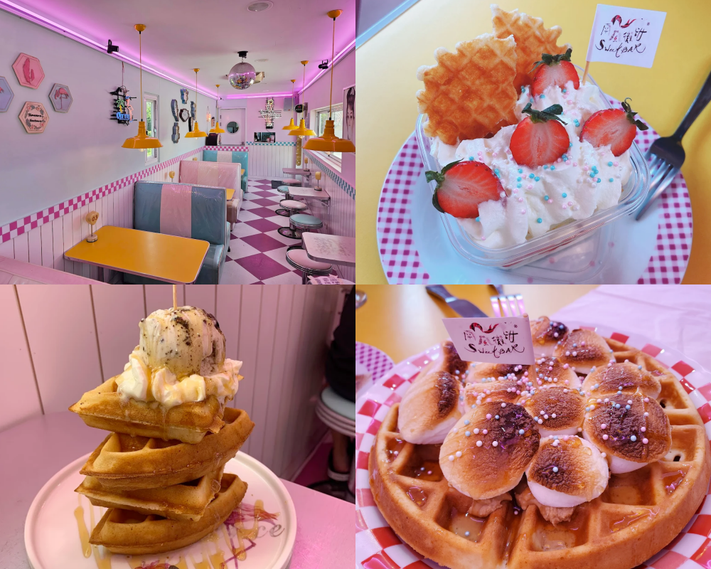 超夢幻的貨櫃屋咖啡廳,店內設計融合韓系咖啡廳感&美式復古元素,粉紅、藍綠、白色交錯,搭配霓虹燈標語,拍照有種置身韓劇場景的錯覺,店內外設有粉紅鞦韆椅、大片彩繪牆,是熱門打卡點,隨手一拍就能變成「韓系少女風」照片,吸引不少部落客與網紅朝聖。