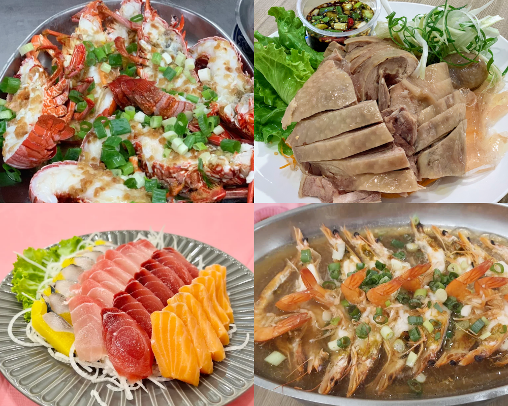 除此之外,菜單還有多種料理風格冷盤、生魚片、酥炸、現流魚料理、活海鮮、各式湯品與季節蔬菜等,任君挑選,若想吃塔香沙母、龍蝦粥等等,在地現撈超新鮮!