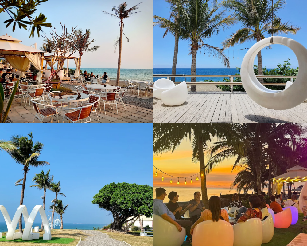 佇立在濱海公路旁,海景第一排的好位置 ! 不僅可以坐下來喝杯咖啡,咖啡店還打造了露臺、細沙區、觀景平台,大人喝咖啡拍美照、小孩玩沙戲水,且造景別有用心,像是月亮鞦韆、水管屋、冰屋帳篷、戲水池彩繪牆等等,是現在最夯的墾丁網美景點之一。若是行程安排ok的話,建議大家可以在傍晚時分前往,可以愜意地坐在位子上輕鬆看夕陽。