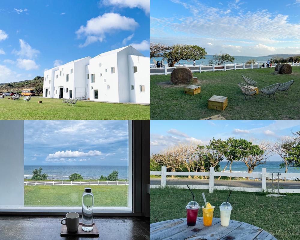 純白的建築助佇立在翠綠的草皮,搭配背後的藍天白雲好似來到希臘度假,室外廣闊草地與無垠的寶石大海,適合放空、拍網美照,是個超夯的墾丁網美景點,且周邊無遮蔽物視野極佳,拍照也相當出片喔!
