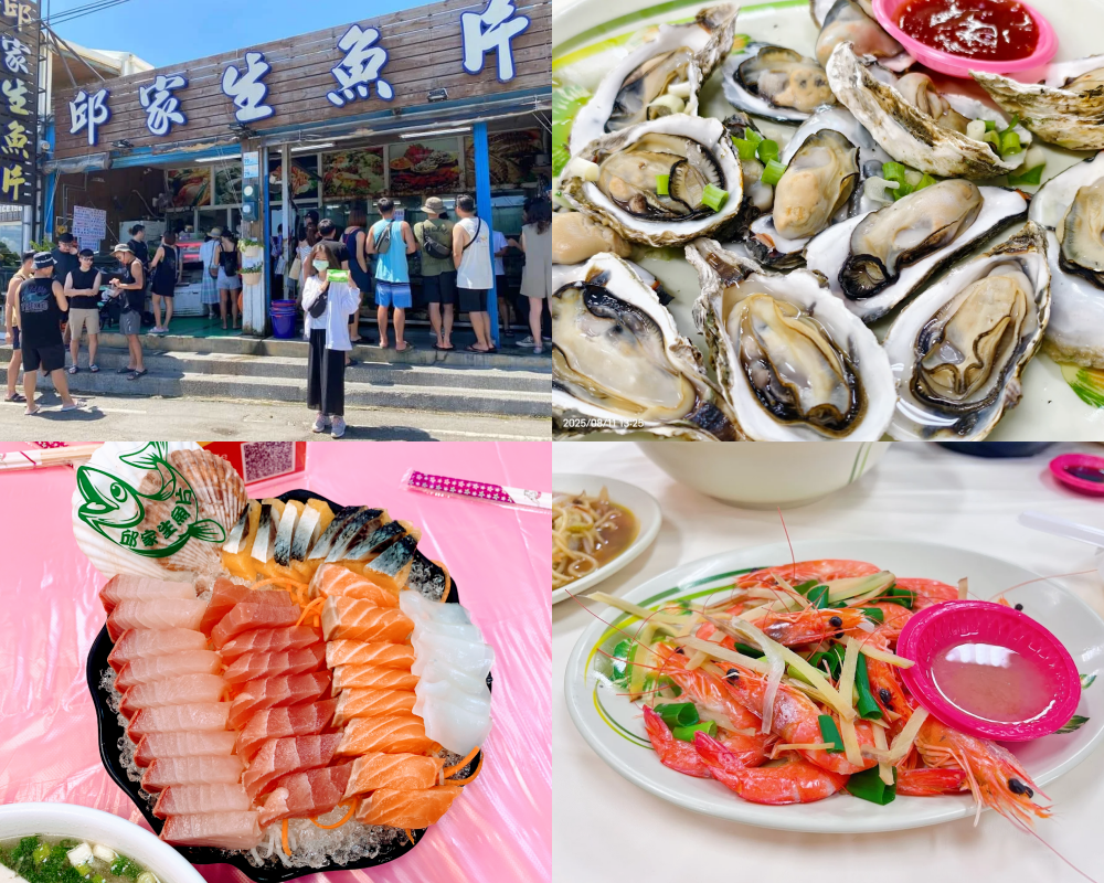 後壁湖的「邱家生魚片」現在由第三代接手,憑藉自家漁船每日現撈漁貨,確保食材新鮮、美味!綜合生魚片大份40片只要200元,價格超親民之外,且生魚片厚切、色澤又鮮美,讓喜歡吃生魚片的人吃好吃滿超滿足!