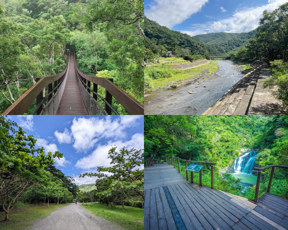 園區分為「白榕步道」單程約30分鐘,可看見龜甲屋遺址;能接近最多品種植物的「帽子山步道」;保留原始叢林環境的「沿山步道」此外還有被選為台灣第二美的雙流瀑布「瀑布步道」與適合深度旅遊的「環狀健行」路線。