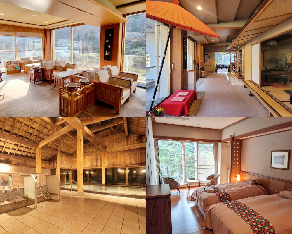 - 房間寬敞約9至11坪,設有傳統榻榻米地板和暖桌: 提供日式傳統的居住體驗。除了附設浴缸的衛浴外,部分房型還配有私人露天浴池,提供私密的泡湯體驗,實現泡湯自由 !